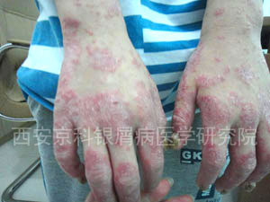 主治医生为小军进行了全面的检查,发现小军的身上的皮损发展的势头很猛烈,全身多处泛发块状皮损,色泽潮红。手部的尤为严重,已经祸及到了指关节,经过进一步检查,手部的病症已经加重为关节病型银屑病。随后组织了医生会诊,确定了详细的康复方案。